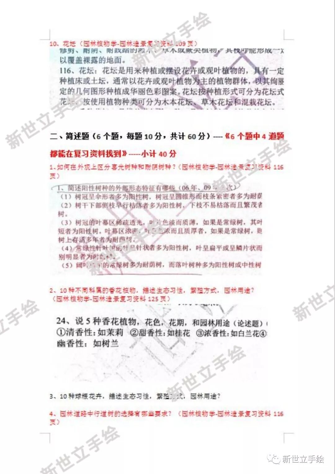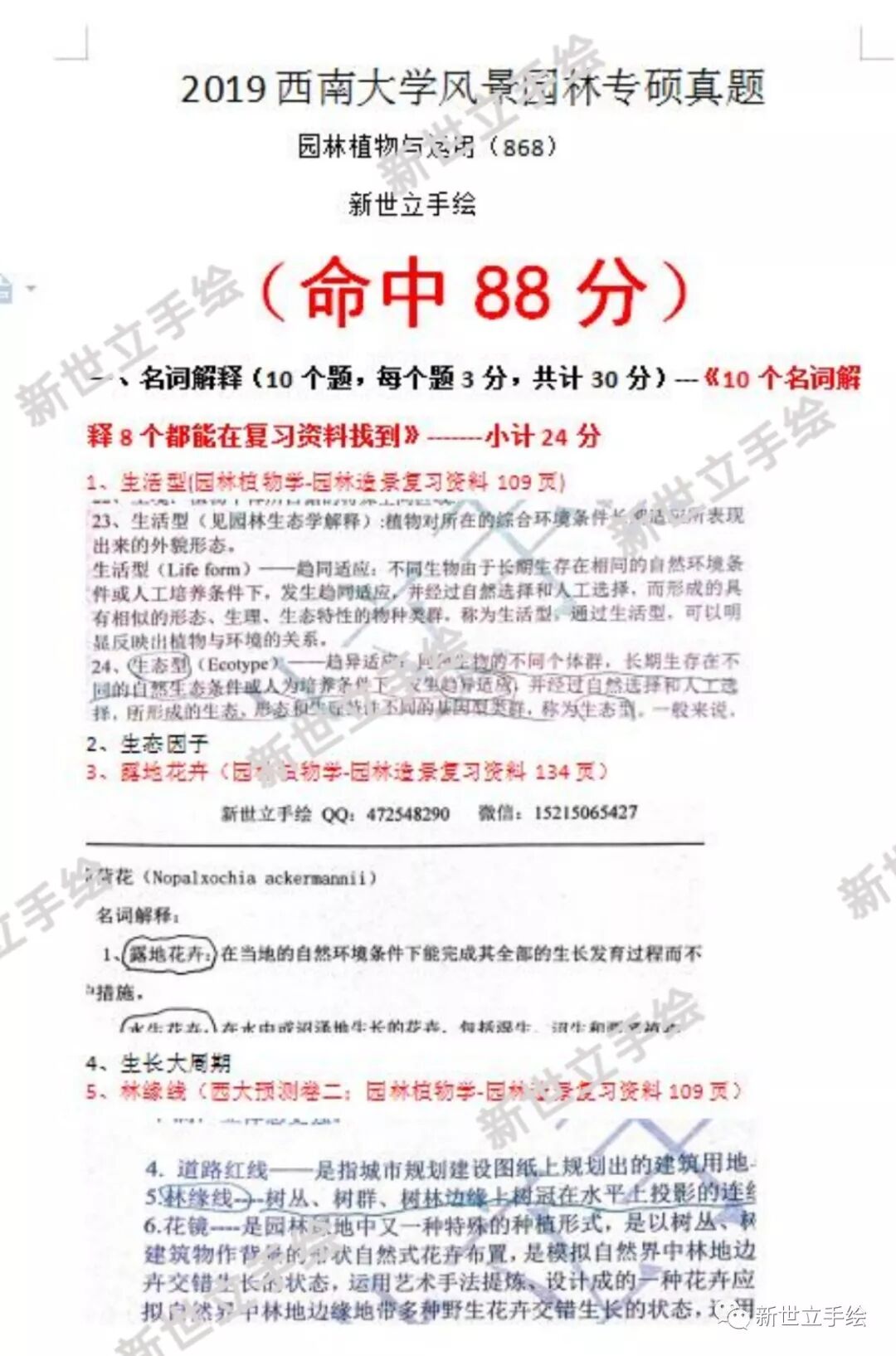在园林植物与运用这一科目的考试中,多数真题更是在我们新版预测资料中有现成的答案!这足以看出新世立手绘考研辅导团队的老师把握考题方向的精准性!