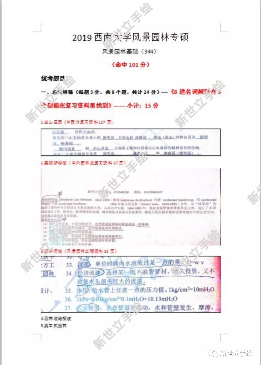 特别要说的是,今年风景园林基础的新题型------绘图题,